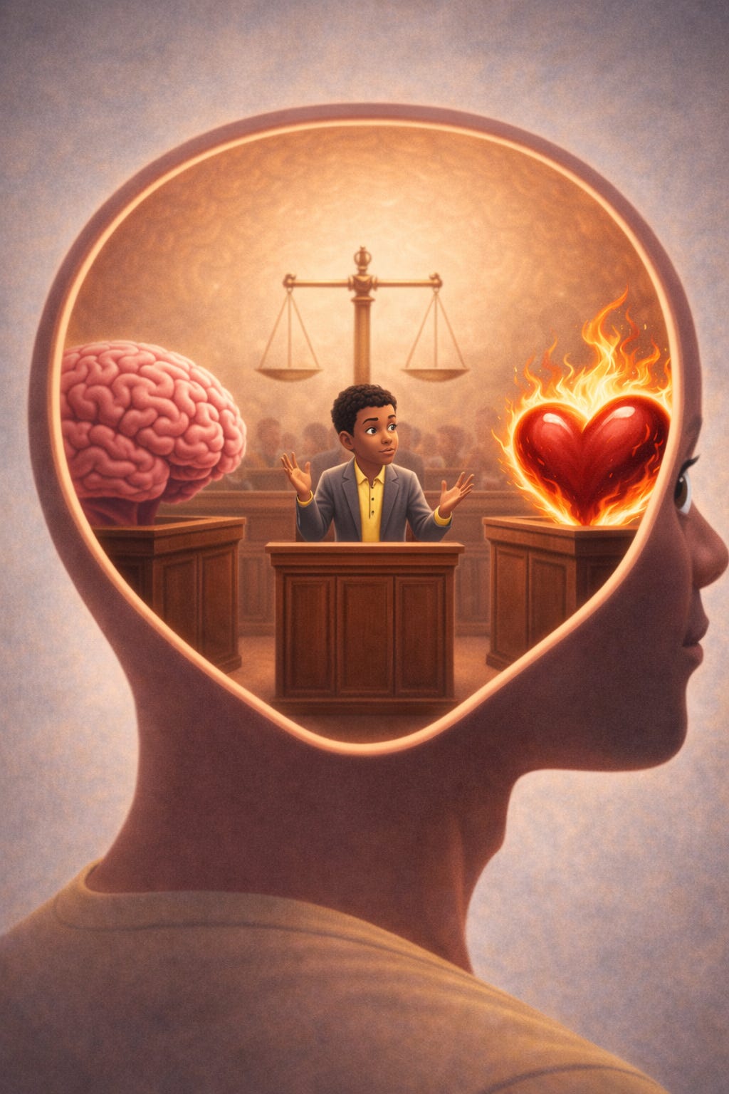 What moves me most is that neither side is villainized. The heart is not mocked for its loyalty. The mind is not shamed for its boundaries. You allow both to speak in their native language: devotion and law. That’s rare. Most people crown one and exile the other.