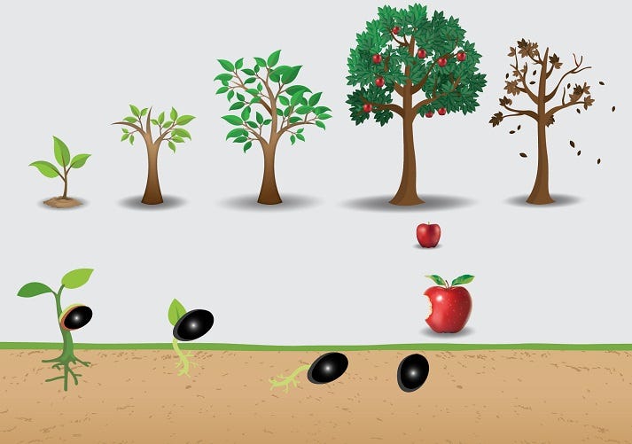 The tree, too, was not always a tree. It was first a seed—tiny, forgotten in the soil—then a fragile shoot a gust of wind could easily have snapped. And only through seasons, through slow growth, through adapting to the wind and rain, does it become what we later call an oak or a fig tree.